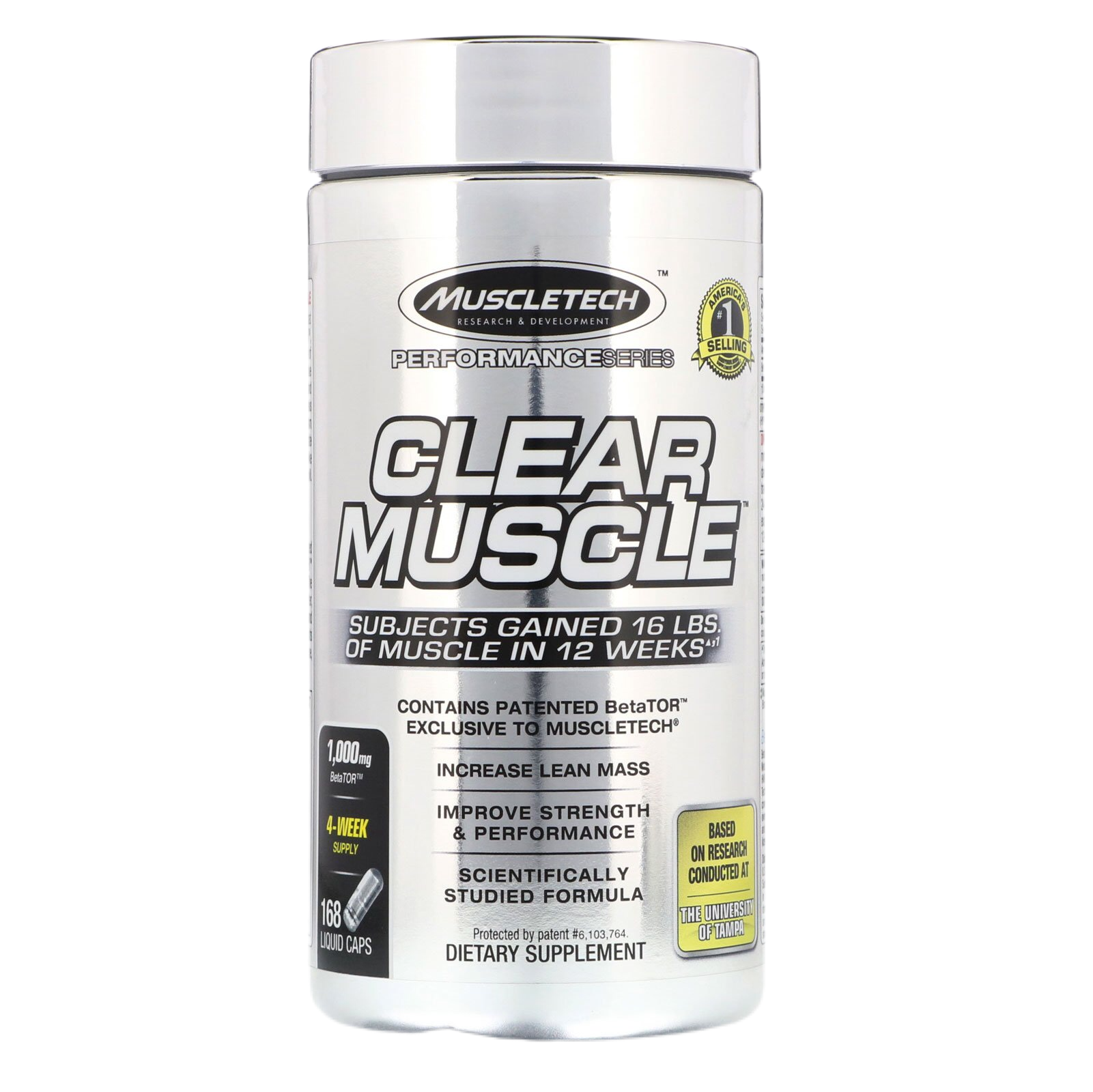 Clear Muscle™ is a new, revolutionary musclebuilding formula powered by BetaTOR®, a novel, never-before-produced metabolite and free acid derivative of leucine and HMB. This one-of-a-kind compound unlocks the true potential of HMB for unprecedented bioavailability, effectiveness, and results. BetaTOR® works to dramatically amplify protein synthesis through the mTOR pathway while simultaneously fighting catabolism by inhibiting the UPP pathway. This puts the body into the perfect state to build muscle like never before.There is no other supplement like this, and it is exclusively available to MuscleTech® in a clear liquid pill.